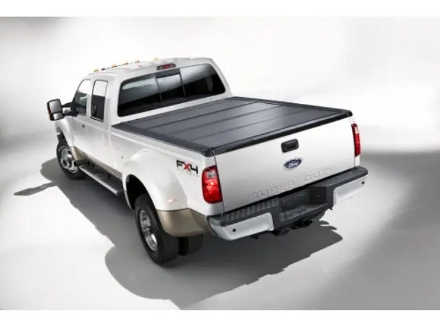 Three covers are available: soft roll-up- soft-folding- or hard-folding. All tonneaus extend over the open bed for out-of-sight security. If desired- you can drive with roll-up and folding tonneaus open for bed access. The hard-folding cover allows complete accessibility to the bed rails. Black. Choose from a range of Tonneau capabilities & appearances. Most versions are lockable and can be installed/removed in 30 minutes or less.